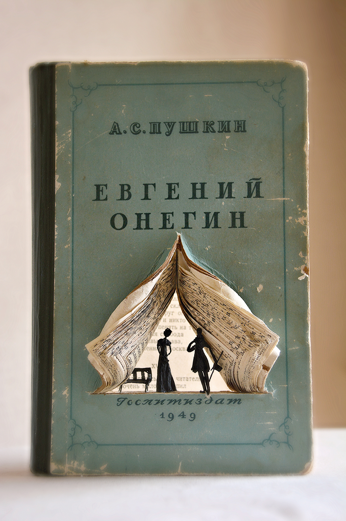 Е.П.: Выставок много, и за рубежом, и в России. Сейчас я участвую в выставке современных коммуникаций в Москве в Музее современного искусства. Правда мои работы очень трудно транспортировать, и, к сожалению, не всегда они приходят на экспозицию в надлежащем виде. Я стараюсь делать вещи, которые мне близки по тематике. Пару лет назад меня включили в проект «Вино и сны искусства» двенадцати художников из России и двенадцати художников из-за рубежа. Сейчас делаю проект по Чеховским рассказам: если герои — детвора, и они играют в лото, то это будет представлено как книга, сделанная из лото. Если же персонаж моей миниатюры будет скрипач, то я обязательно сделаю его из нотной тетради. Многие люди могут подумать, что я порчу книги. Спешу развеять этот миф — я делаю ксерокс нужных мне страниц, поэтому теоретически книгу возможно прочесть, но тогда придется разрушить миниатюрный мир. За исполнением лежит большая работа, я днем и ночью думаю о проектах. За каждым объектом стоит множество проанализированной литературы, я могу перечитать все произведения Гоголя, его письма… Кстати, когда я занималась Серебряным веком, то, представьте, непроизвольно выучила немало произведений наизусть!